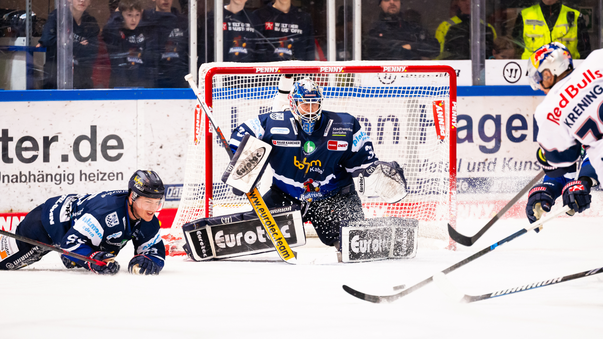 Mit Leidenschaft, Disziplin und einem überragenden Hendrik Hane im Tor haben die Iserlohn Roosters dem Meisterschaftsanwärter EHC Red Bull München ein beeindruckendes 3:1 abgerungen. Die Sauerländer legten den Grundstein früh: Camara vollendete ein starkes Powerplay und legte vor der ersten Pause noch einmal nach. Dazwischen wurde Münchens Ausgleich erst nach Videobeweis anerkannt – ein kurzer Dämpfer, den der IEC sofort mit dem 2:1 beantwortete.