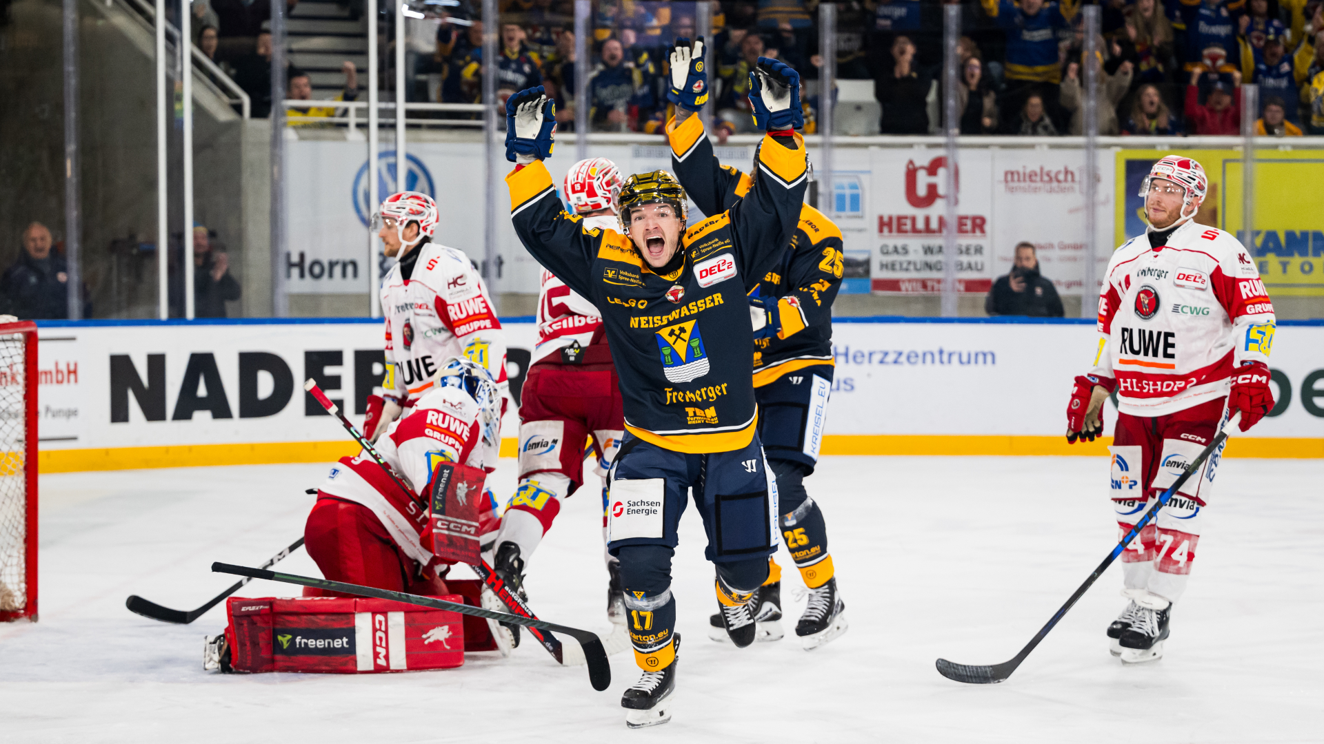 In einem wilden Offensivspektakel setzte sich die Düsseldorfer EG mit 7:6 beim ESV Kaufbeuren durch. Youngster Joel Hofmann traf kurz vor der zweiten Pause zur 4:3-Führung, ehe Luca Tosto mit zwei Toren und einer Vorlage zum Matchwinner wurde. Auch Erik Bradford glänzte mit vier Scorerpunkten.